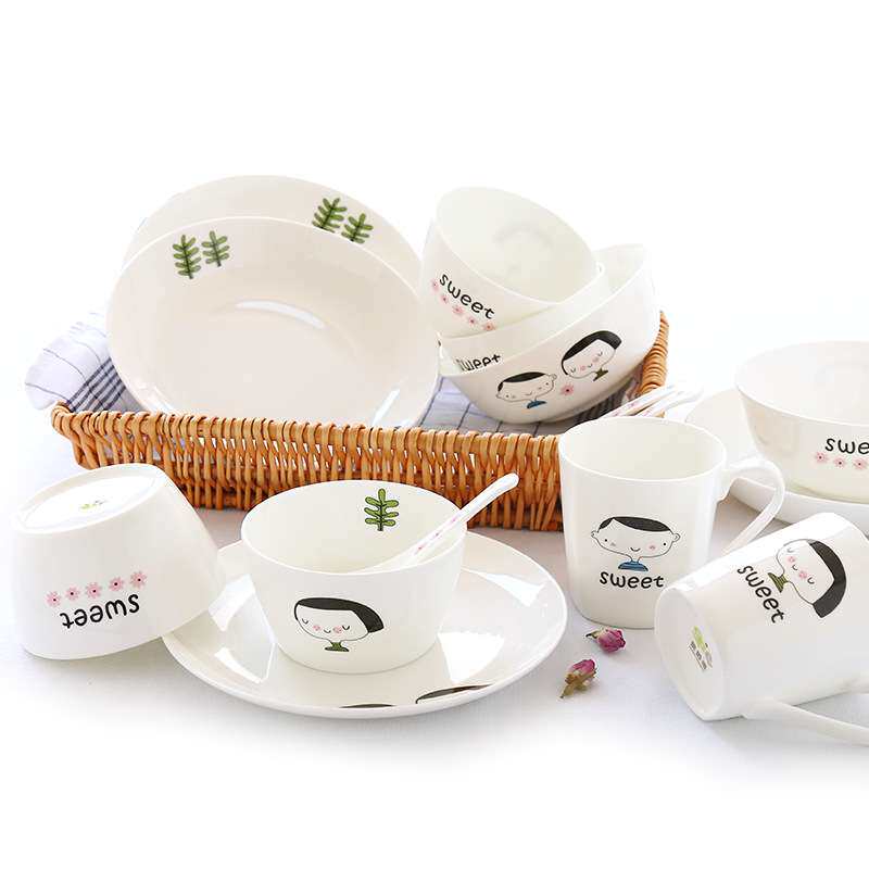 唐山骨瓷 餐具套装碗盘16头家用创意韩式陶瓷器 骨瓷餐具套装