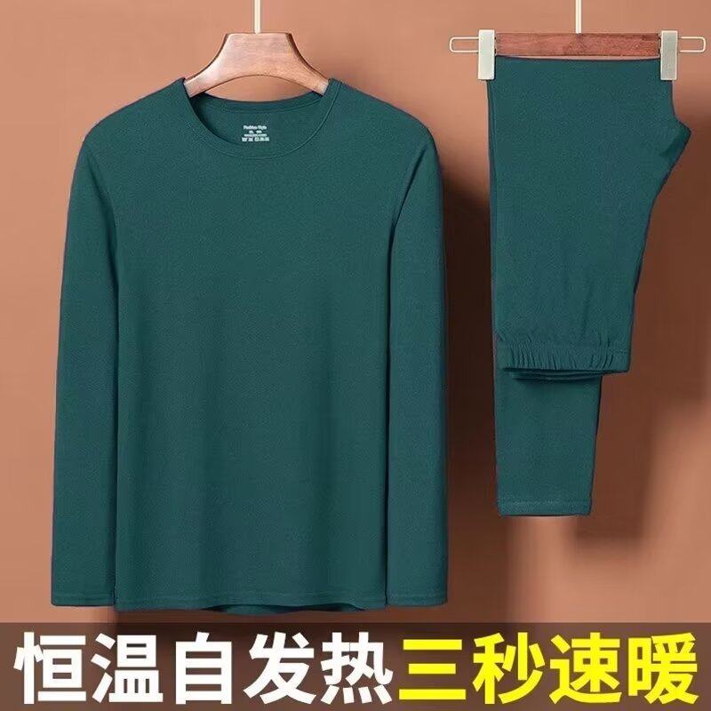 双面德绒保暖套装长袖t恤圆领打底衫T男士冬季恒温自发热睡衣长裤