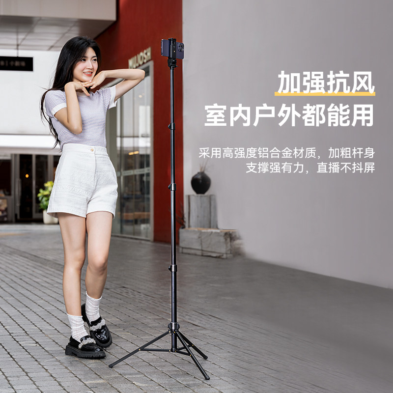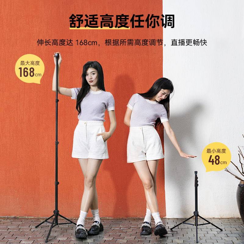 手机拍摄支架直播专用自拍杆三脚架落地式多功能支撑架通用捭机架户外便携伸缩升降网课考研复试架子三角支夹