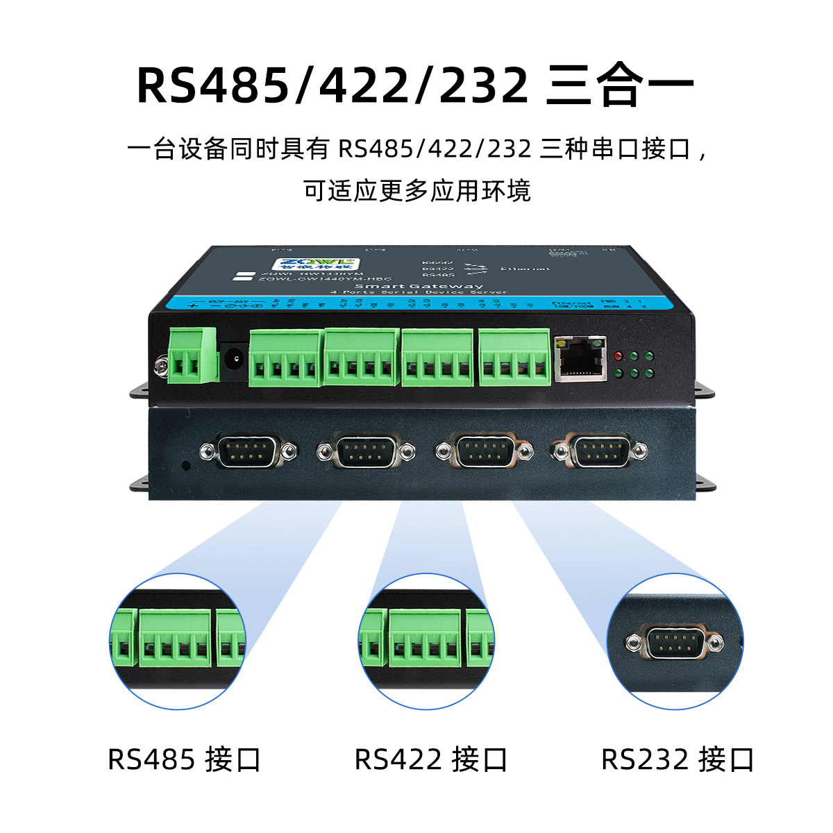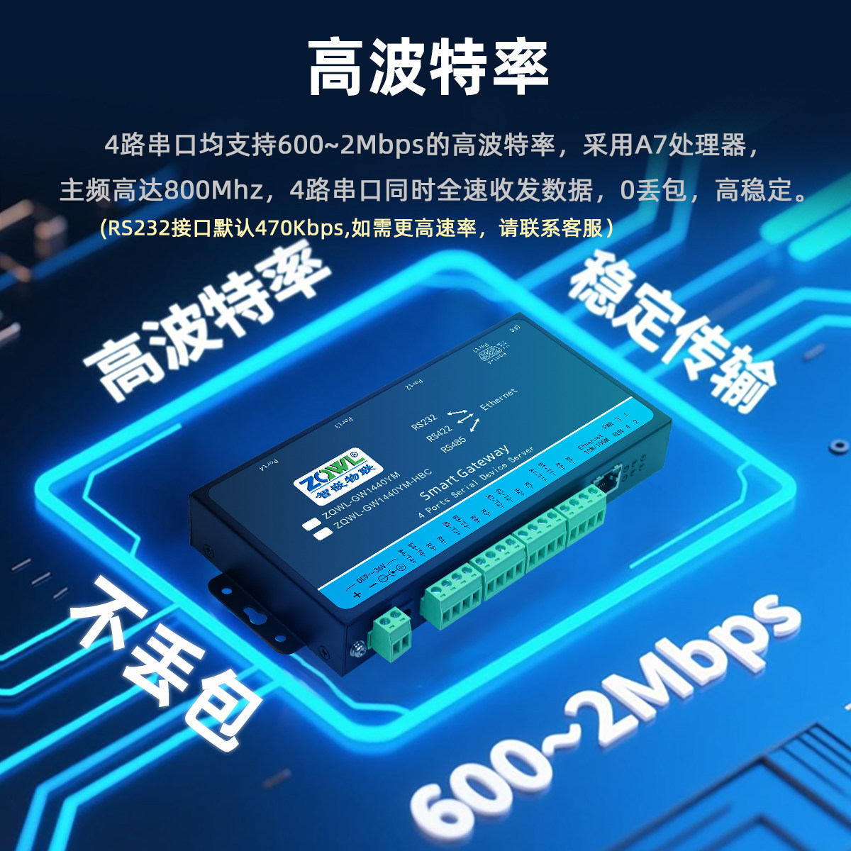 智嵌物联全国产4路串口服务器rs485/422/232转以太网模块通讯mqtt/http转网口json格式modbus网关TCP/RTU互转