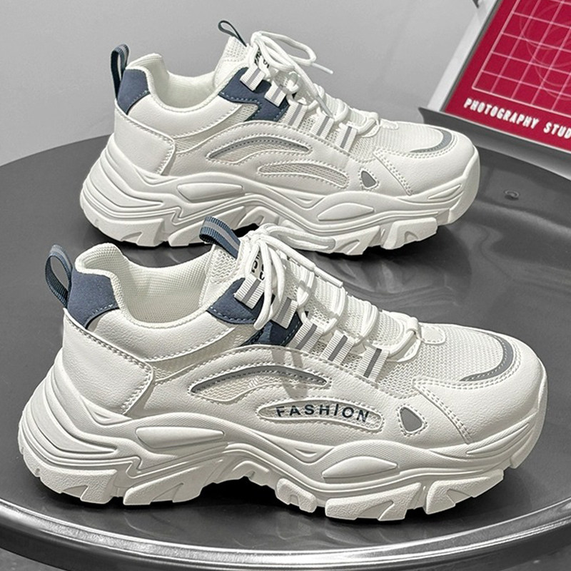 男鞋2025新款夏季青少年透气网面休闲运动鞋厚底增高白色老爹潮鞋