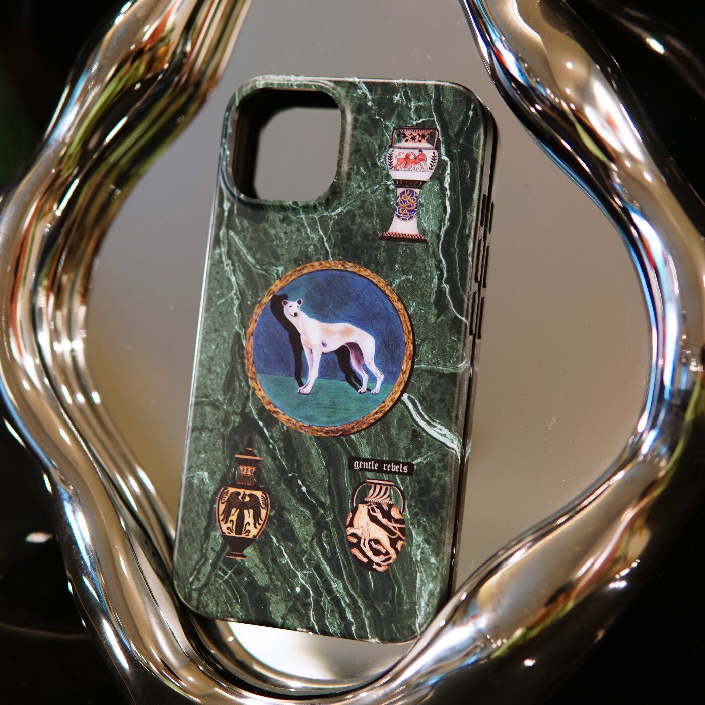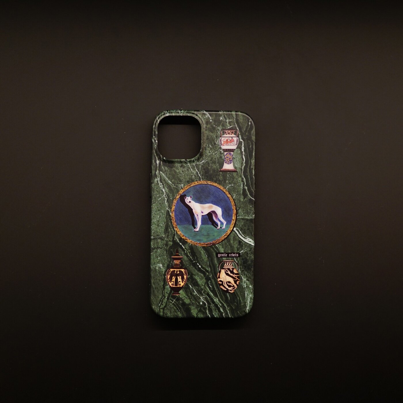 GENTLE REBELS祖母绿大理石手机壳iphone15promax猎犬ins北欧中古花瓶苹果14古董欧洲复古奢华风油画质感小众