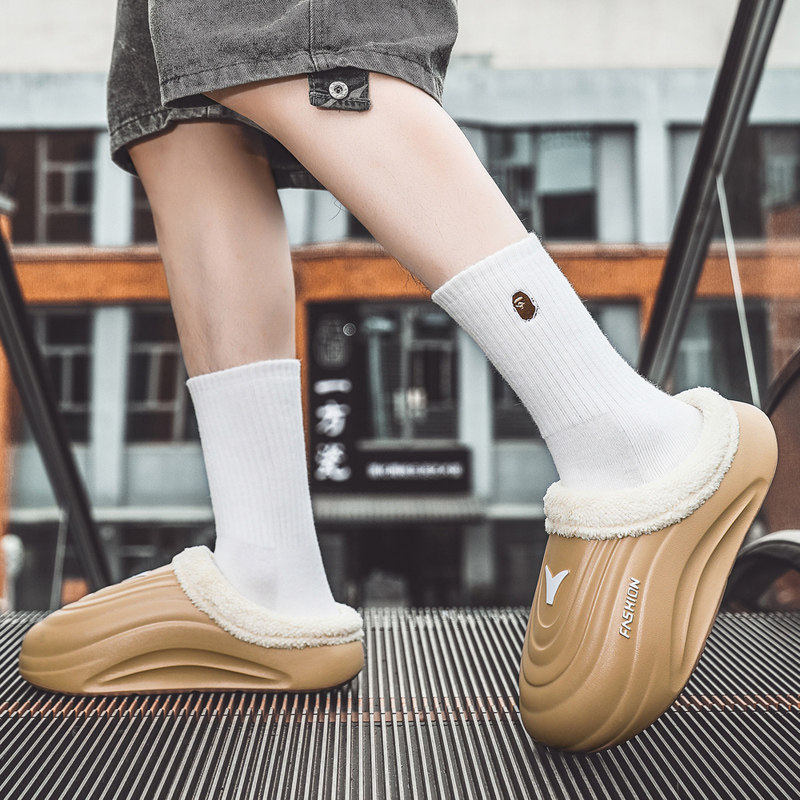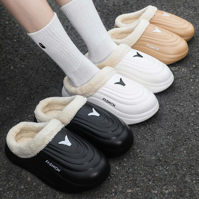 潮牌运动风防水棉拖鞋男士2025冬季新款韩版外穿居家室内防滑棉鞋