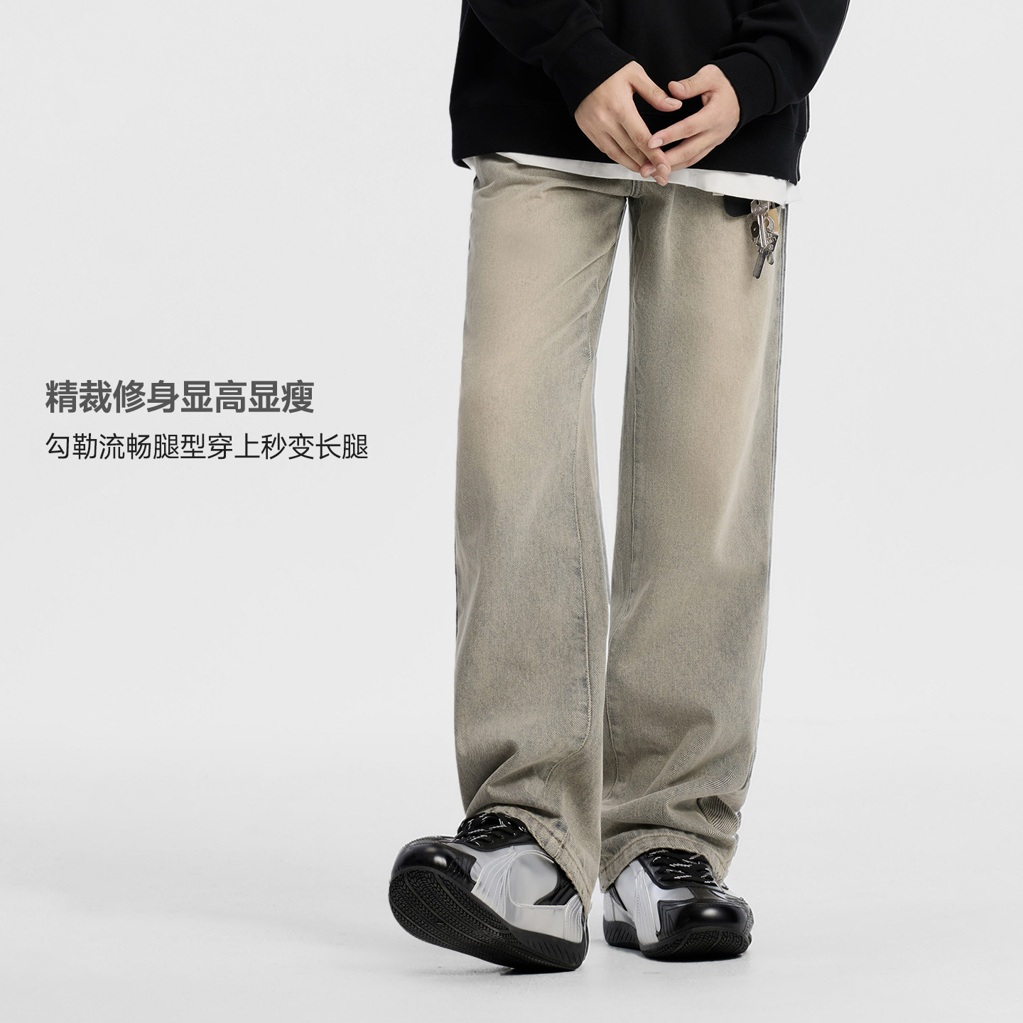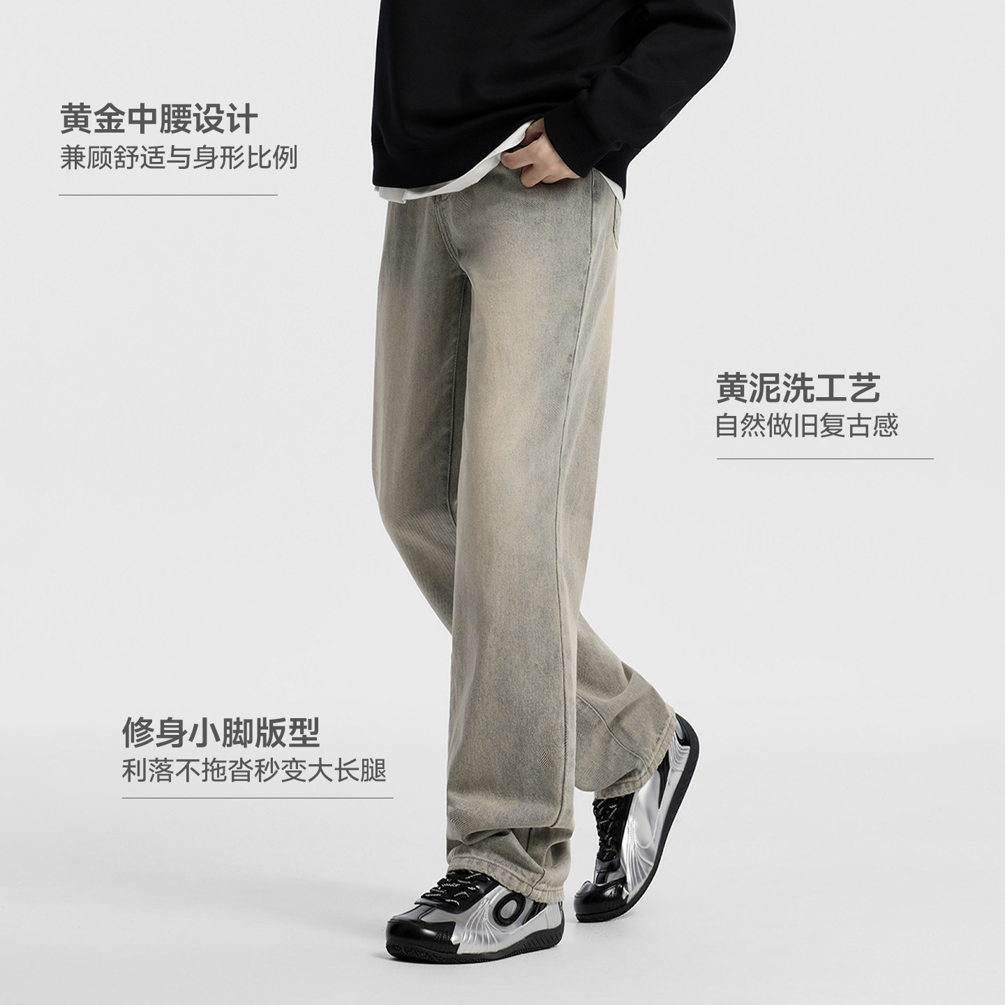 美特斯邦威牛仔裤男2025秋季新款休闲直筒黄泥裤做旧复古水洗长裤