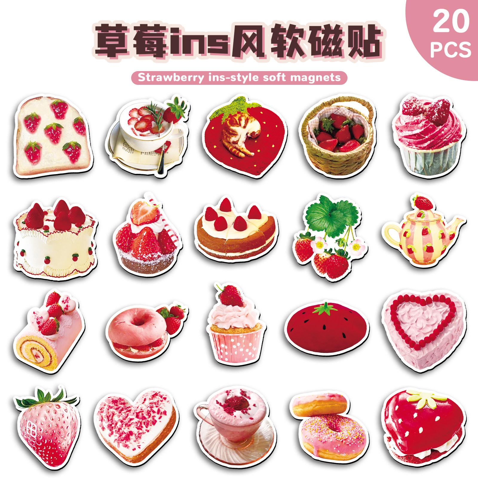 40张草莓ins风软磁冰箱贴可爱卡通水果趣味玩具创意diy家居装饰防盗门留言板汽车黑板柜子入户门吸铁石磁力贴