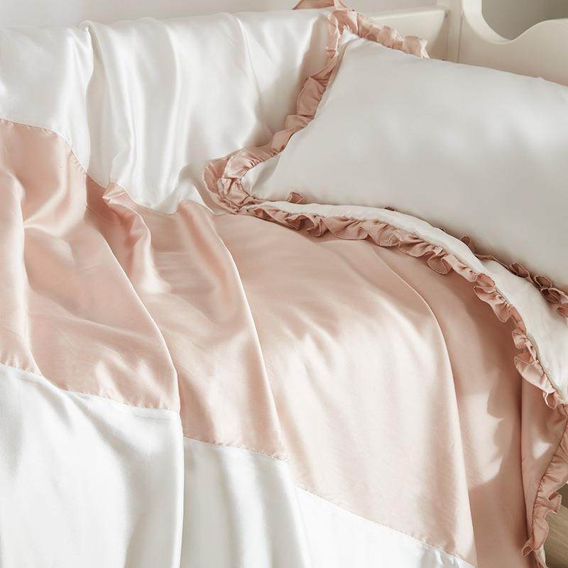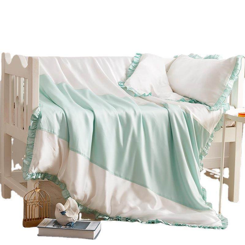 严选蚕丝被儿童真丝被套拼色清新幼儿园枕套桑蚕丝被罩两件套