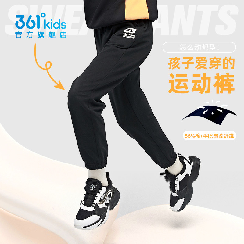 361度童装儿童裤子男童运动裤春季新款黑色男孩冬季加绒女童长裤