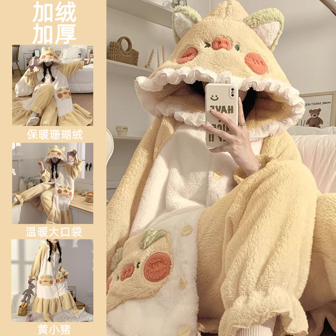 珊瑚绒睡衣女款2026冬季加厚男士情侣睡袍家居服可外穿加绒连体