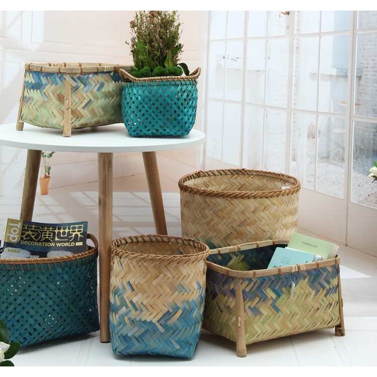 越南手工竹编竹筐竹篮子编织花篮创意花盆篮筐篮子装饰筐植物花器