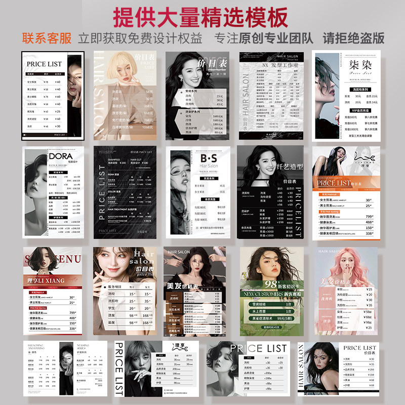 价目表理发店定制美容院美睫美甲健身房私教口腔医院亚克力广告展示标价牌挂墙订制美业美发店价格表设计制作