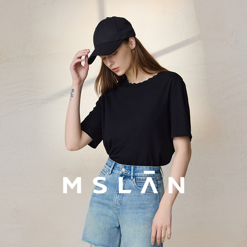 【可多搭】MSLAN春夏圆领螺纹修身纯色打底短袖T恤MFCE1103