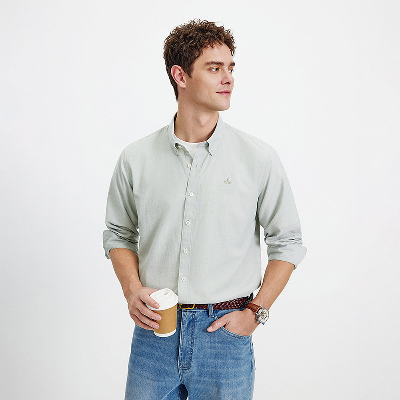 王安宇同款森马长袖衬衫男纯棉2025春秋新款通勤休闲上衣商务衬衣