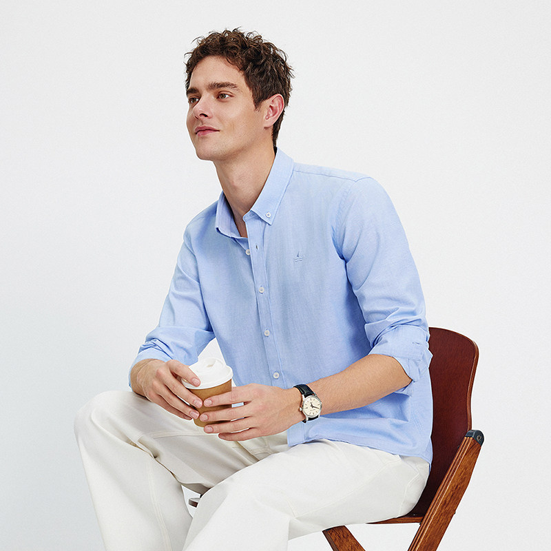网易严选纯棉长袖衬衫男高级感2025年春季衬衣牛津纺休闲外套男