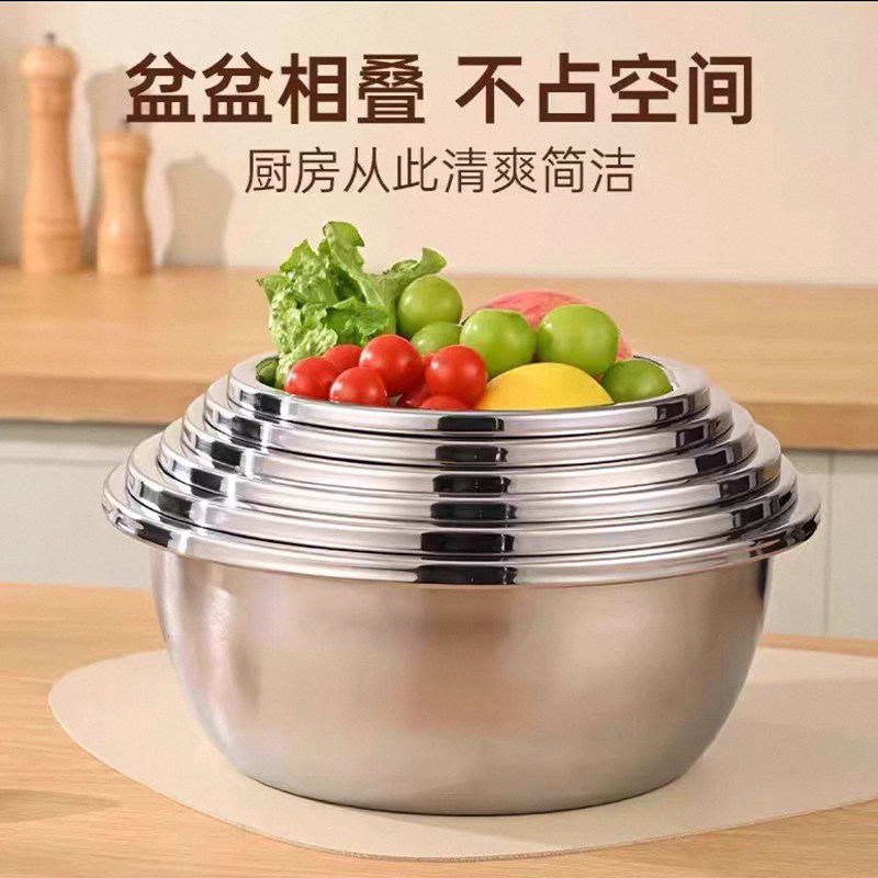 食品级不锈钢盆洗菜和面加厚打蛋家用厨房凉拌沙拉料理盆直边盆碗