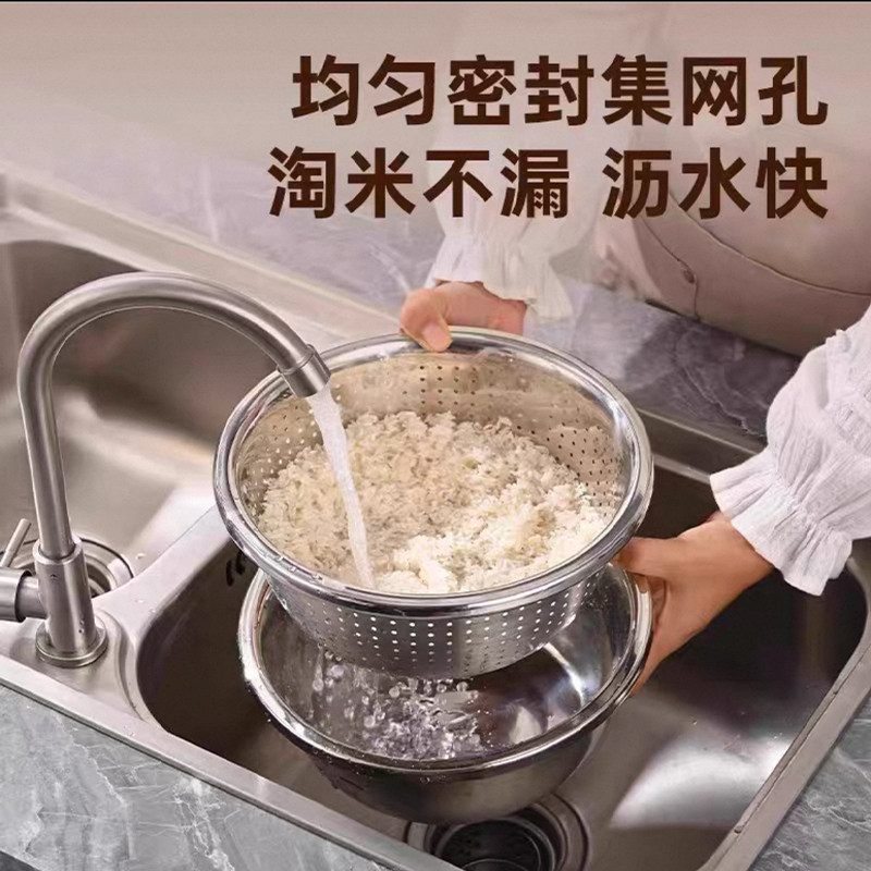 加厚不锈钢沥水篮洗菜盆洗米筛厨房神器水果篮家用沥水漏盆淘米盆