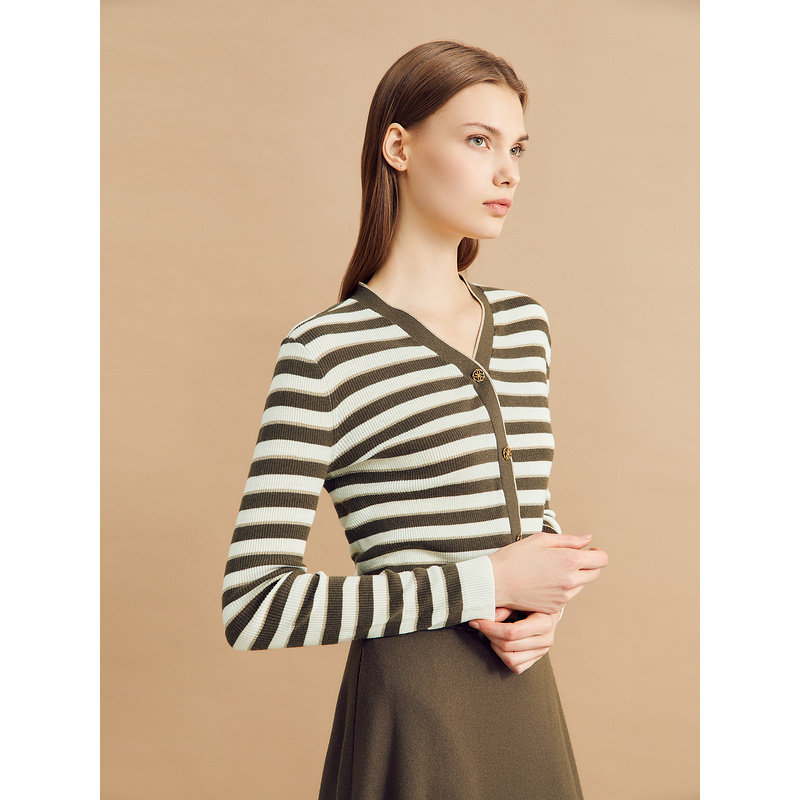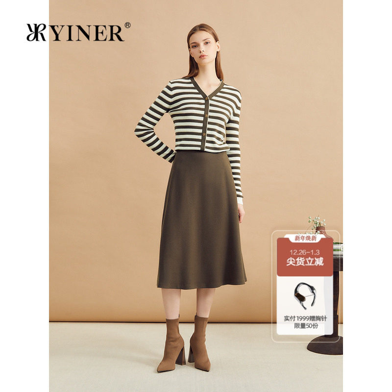 【美丽诺羊毛+羊绒】YINER音儿冬季美拉德条纹毛针织衫