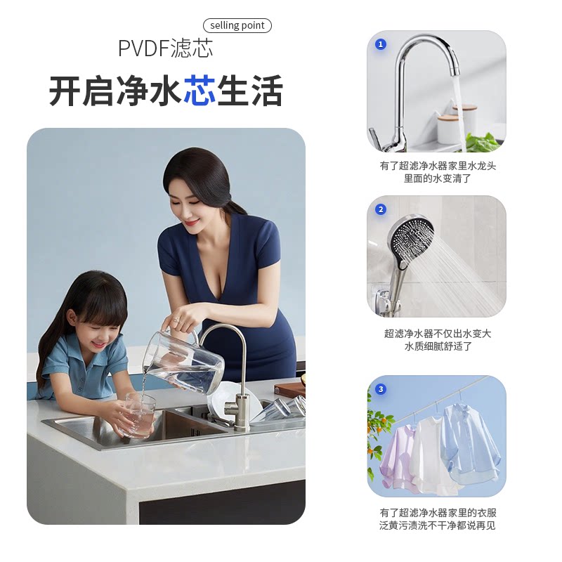 净水器家用直饮厨房自来水超滤净化水机前置活性炭五级过滤器