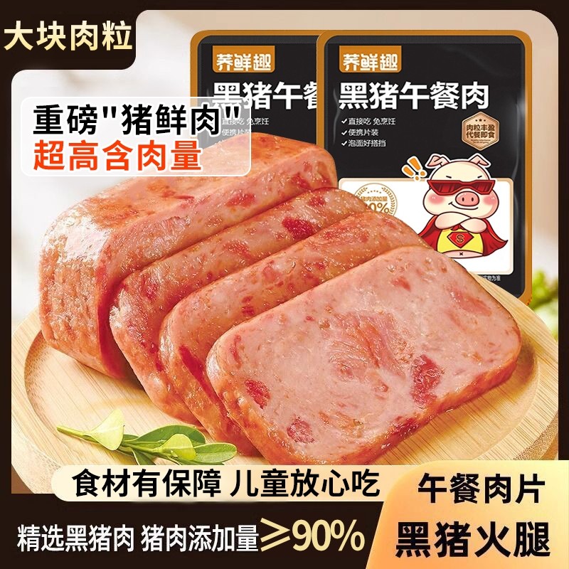 黑猪午餐肉即食火腿单独包装肠早餐三明治专用猪肉健康袋装代餐