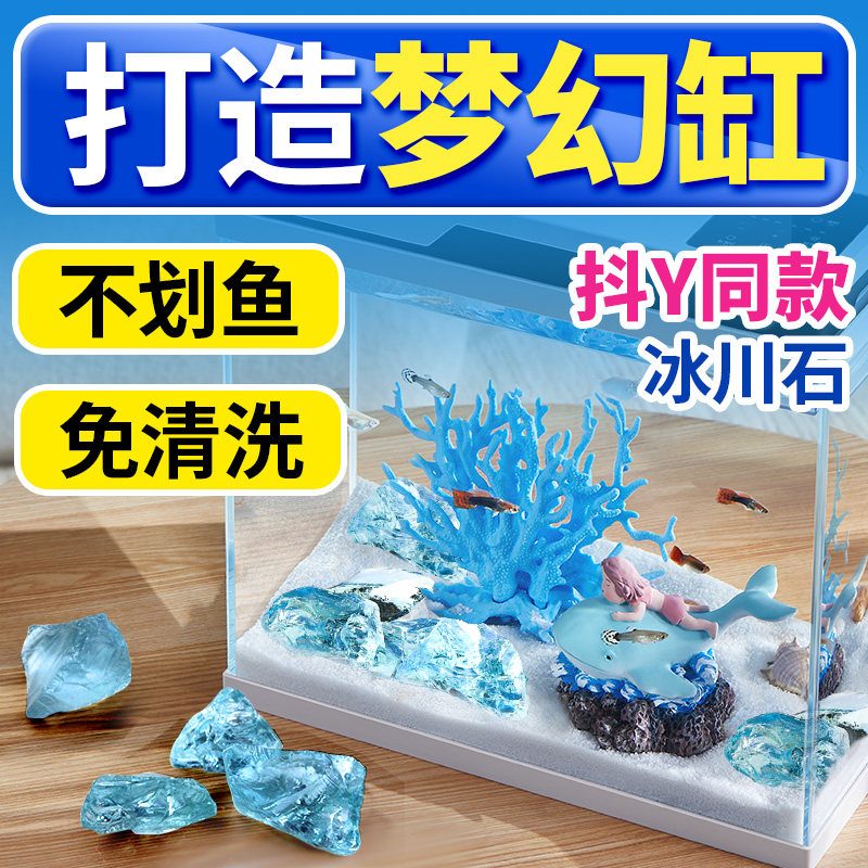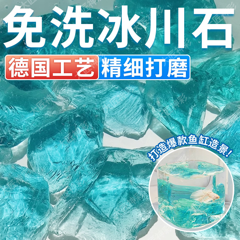 鱼缸造景水族箱水晶铺底砂冰川摆件冰蓝石大匠神彩景观装饰玻璃沙