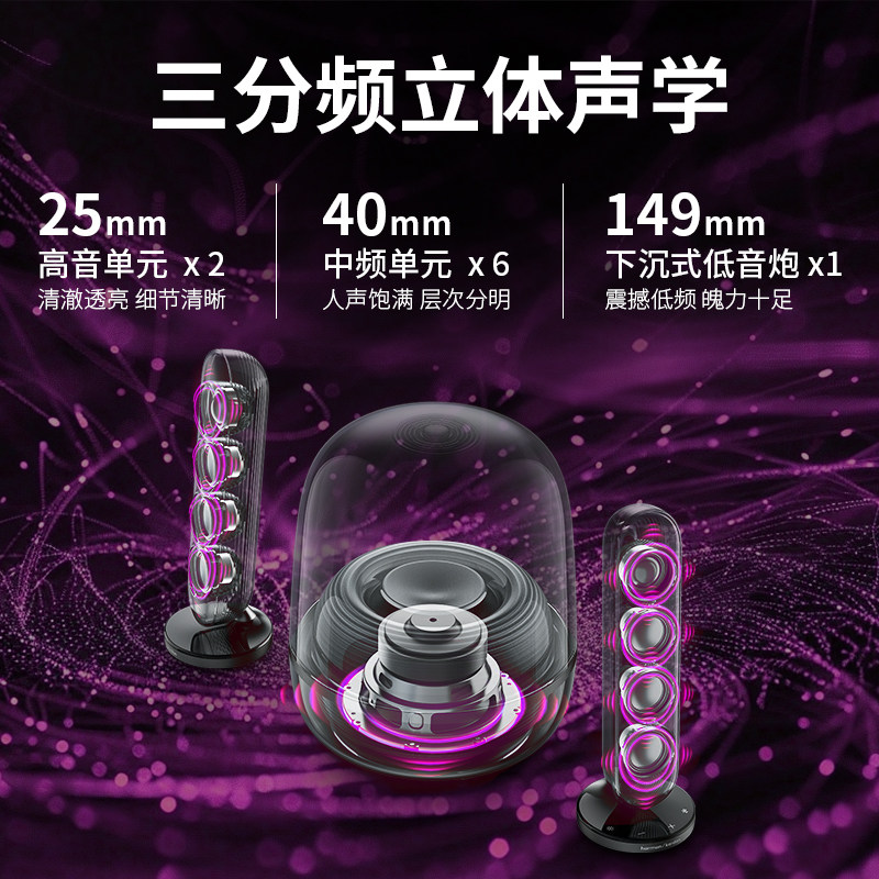 哈曼卡顿 SoundSticks5水晶5代桌面蓝牙音响家用多媒体高音质音箱