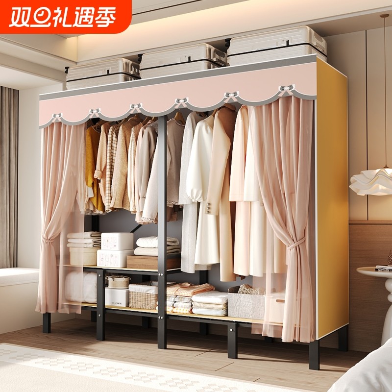 衣柜家用卧室结实耐用布衣柜加粗钢架免安装收纳简易衣柜出租房用