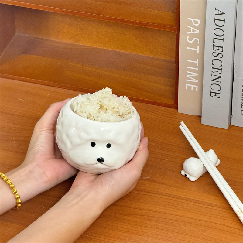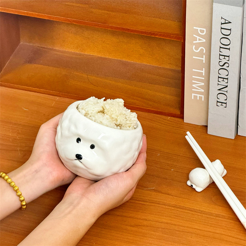 创意可爱ins立体小狗饭碗陶瓷家用餐具比熊米饭碗送人礼物礼盒装