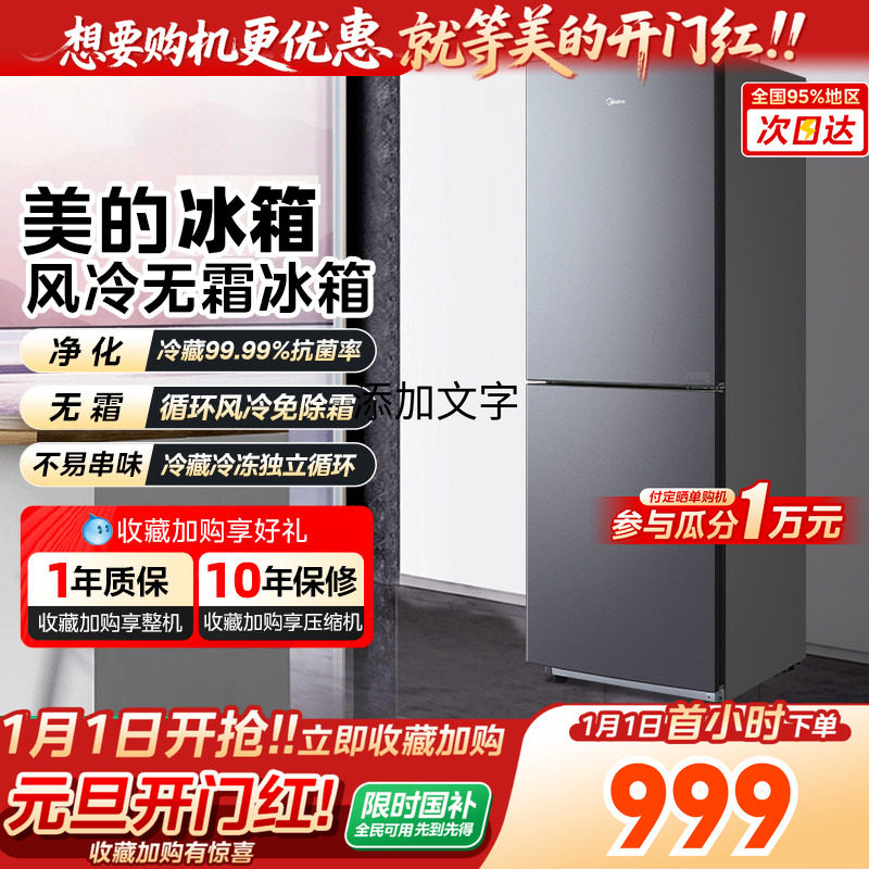 【以旧换新】美的180L+风冷无霜双门冰箱家用小户型节能冷藏租房