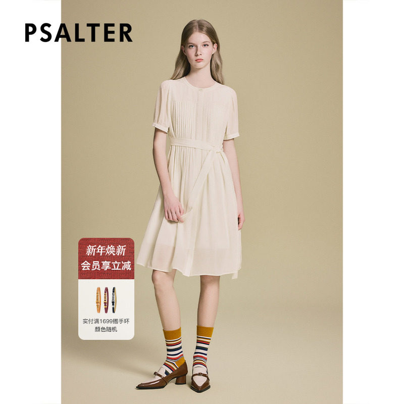 诗篇专选学院风风琴褶泡泡袖真丝连衣裙2025夏季新款