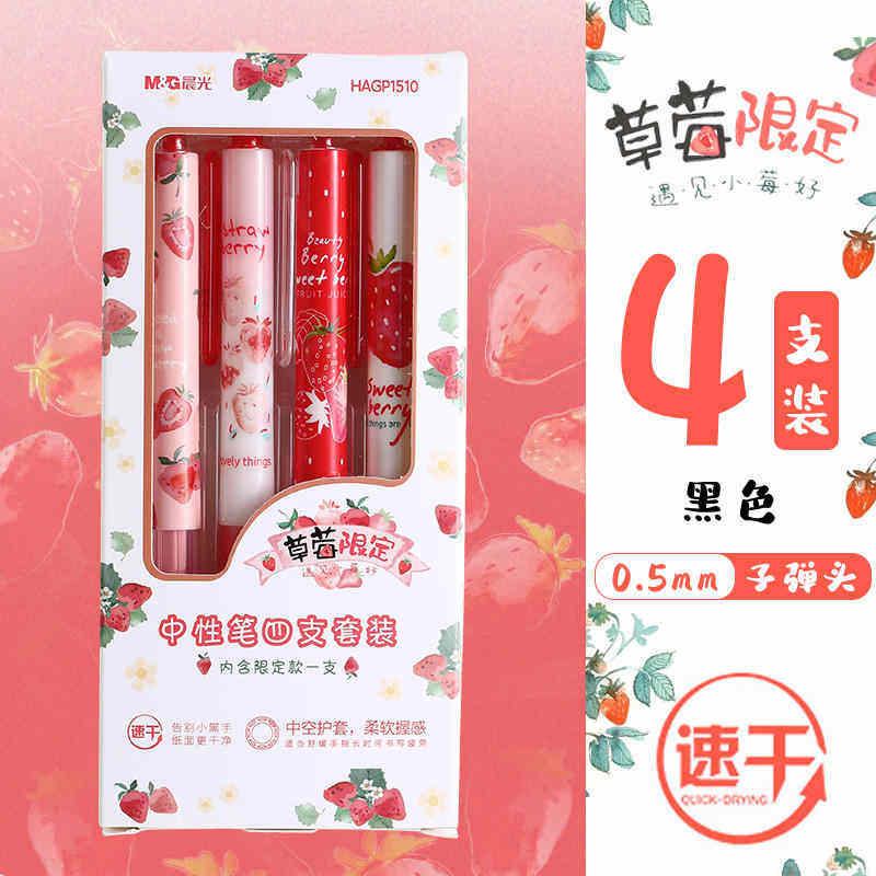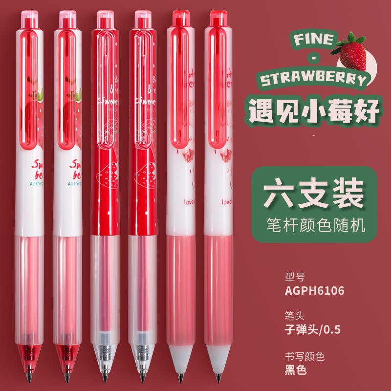 晨光草莓限定系列H6106按动中性笔学生用限量版可爱超萌少女心0.5按动笔黑笔速干直液式走珠水笔高颜值圆珠笔