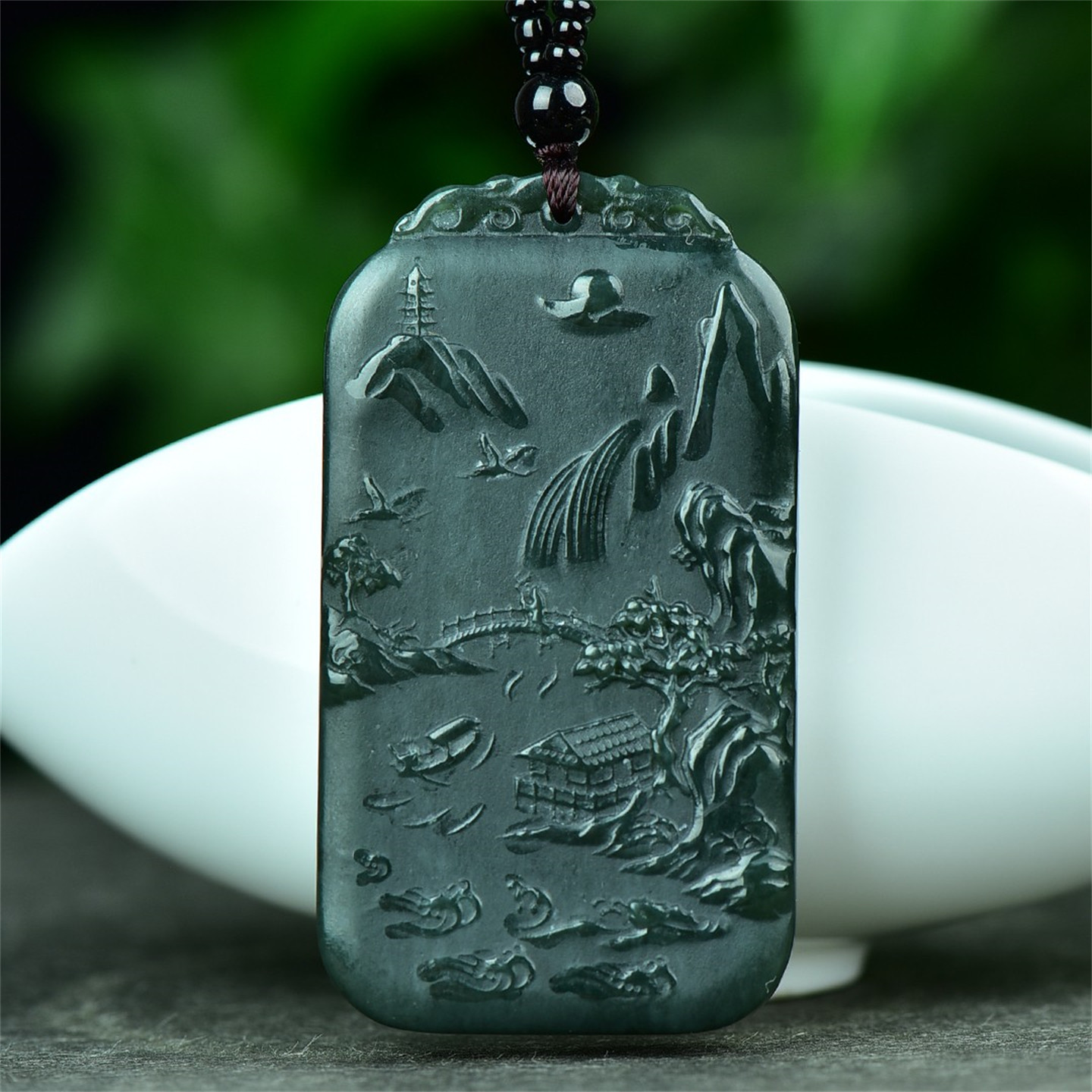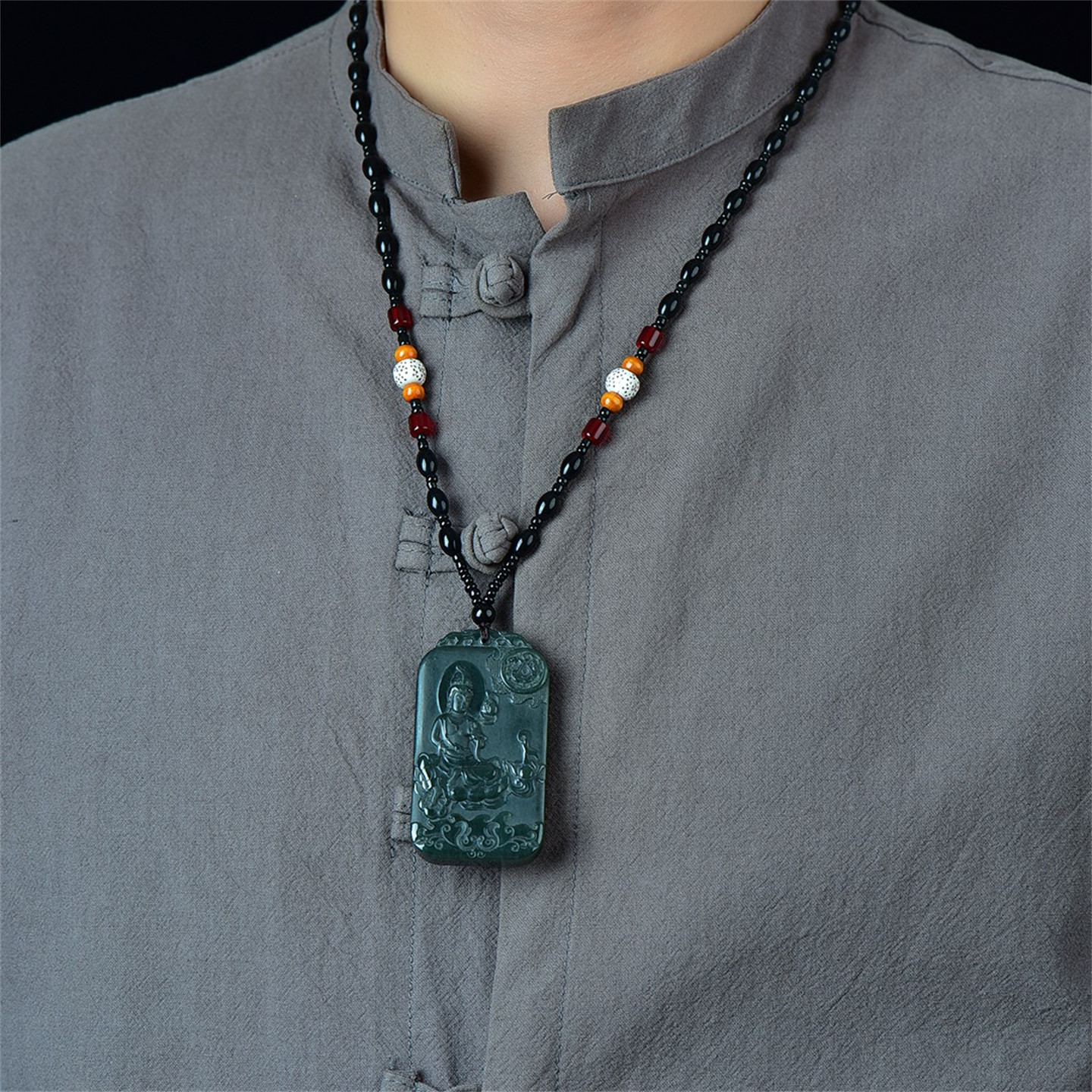 送证书天然新疆和田玉青玉挂件南海观音菩萨玉石吊坠男款玉佩8831