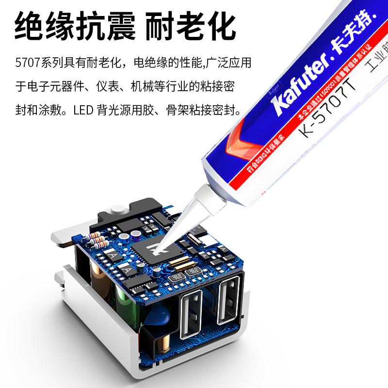 卡夫特k-5707T/W硅橡胶工业胶粘剂粘接ABS PC PA PMMA工程塑料专用胶水强力耐高温绝缘防震粘塑料的胶水