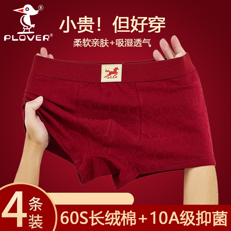 Plover本命年纯棉男士内裤马年大红色平角裤结婚喜庆男生四角短裤