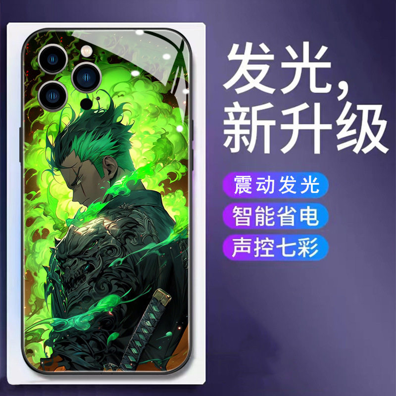 海贼王适用17苹果16promax手机壳来电发光iphone15plus索隆14个性13mini七彩12玻璃11声控xs卡通xr动漫男潮se