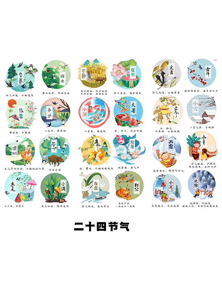 二十四节气24节气手帐贴纸中国传统文化教育素材清明冬至立夏贴画