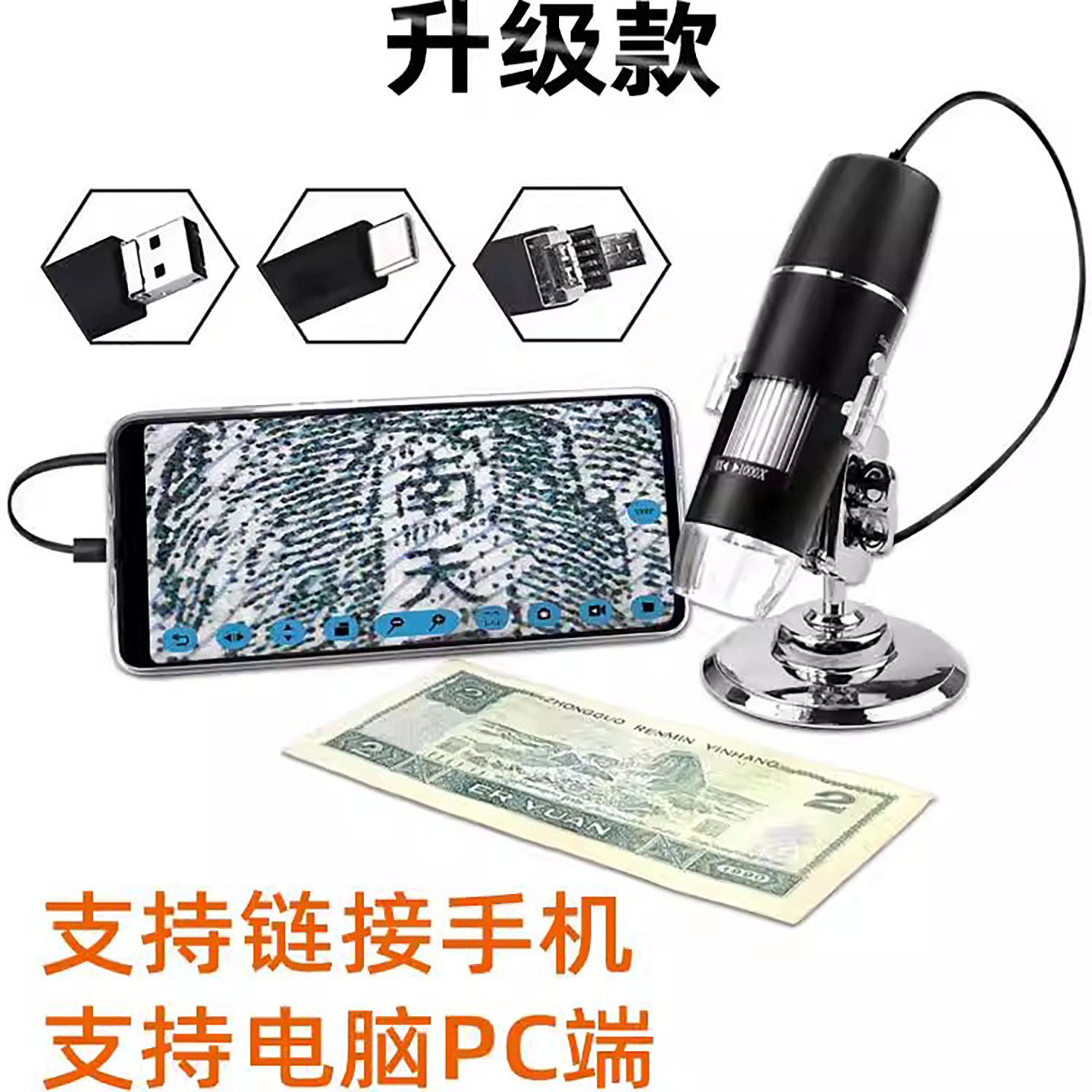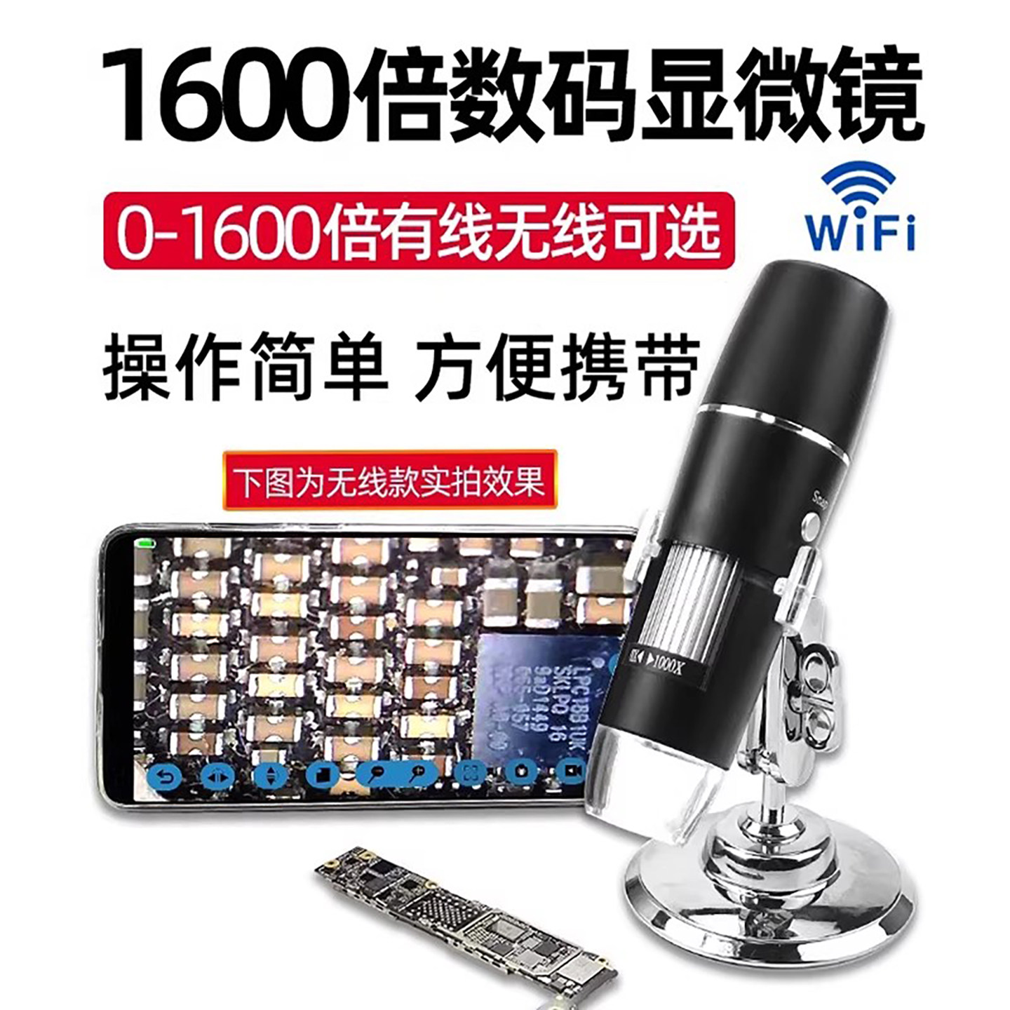 湘奕高清1600倍电子数码手机显微镜皮肤黑头无线手持放大镜皮肤毛孔USB主板维修屏幕排列邮票鉴定印刷网LED灯