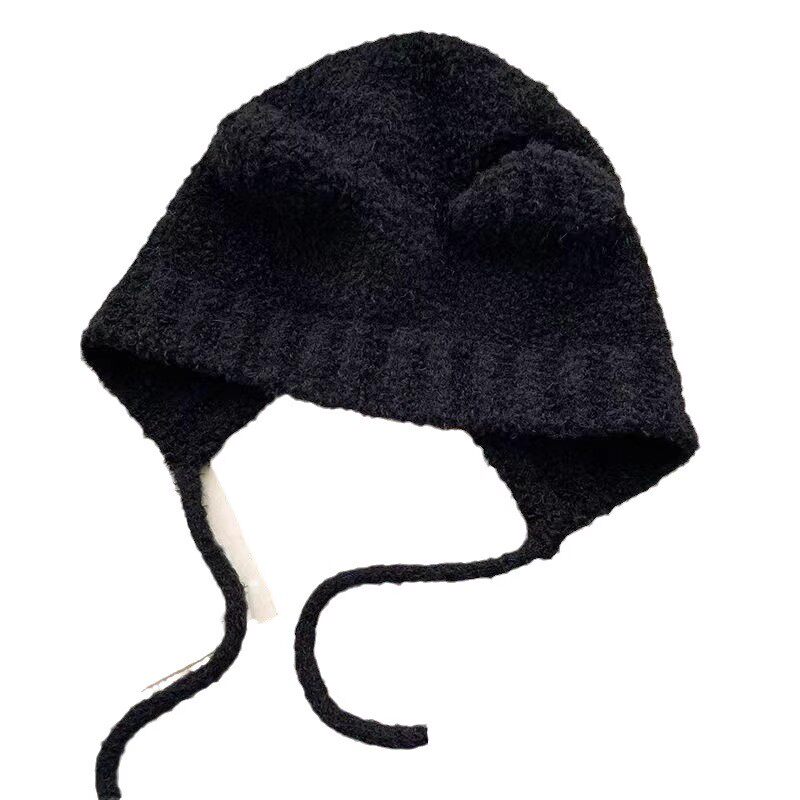 明星同款可爱小熊护耳帽女冬季加厚保暖针织毛线帽大头围毛绒帽子