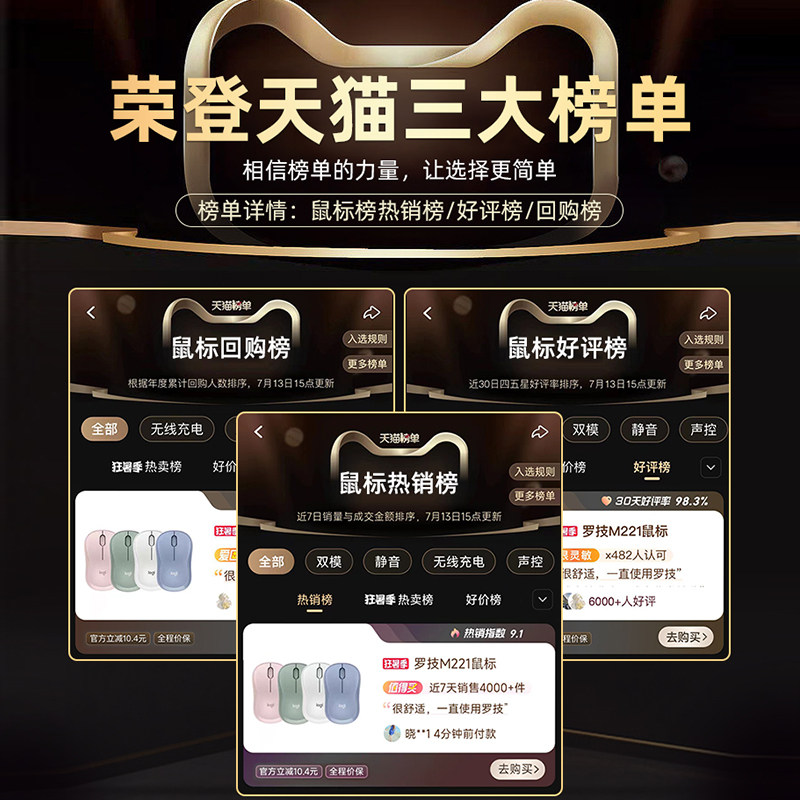 【官方旗舰店】罗技M221静音无线鼠标办公滑鼠笔记本电脑女生粉色