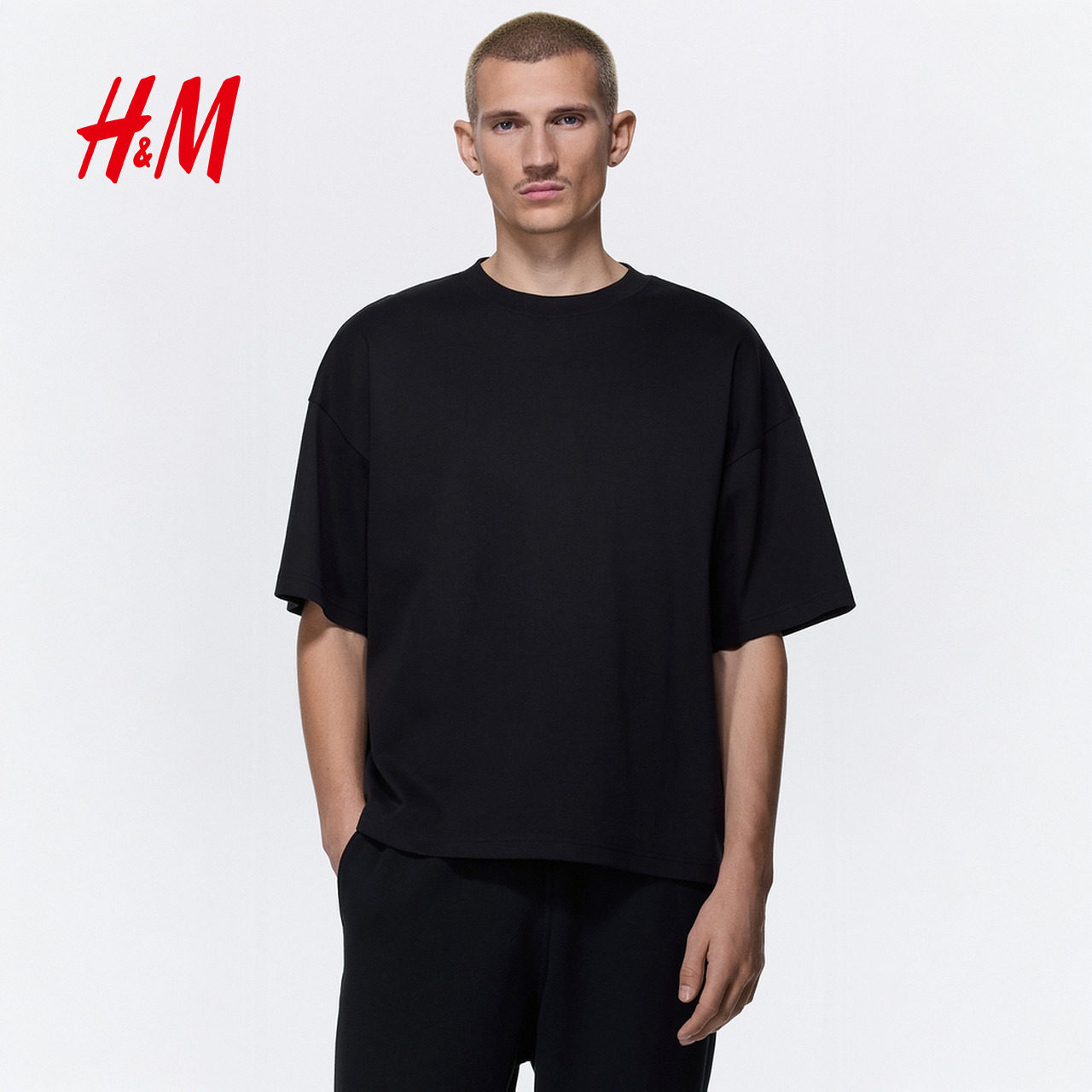 HM男装T恤2026春季新款通勤时尚大廓形T恤上衣方形1326921