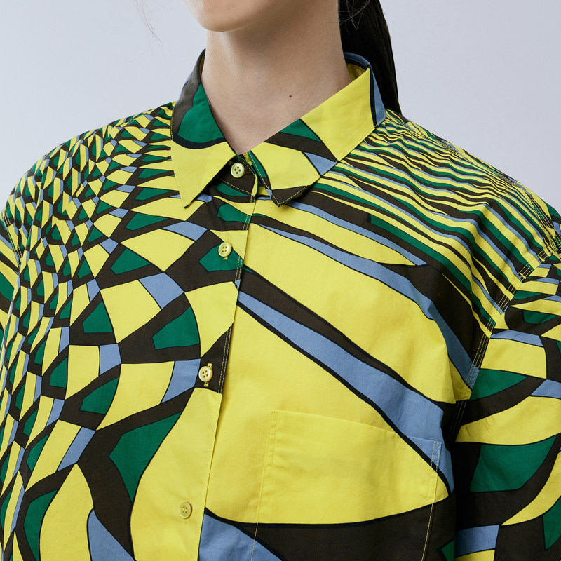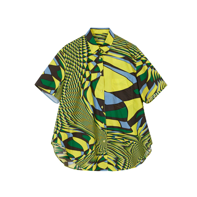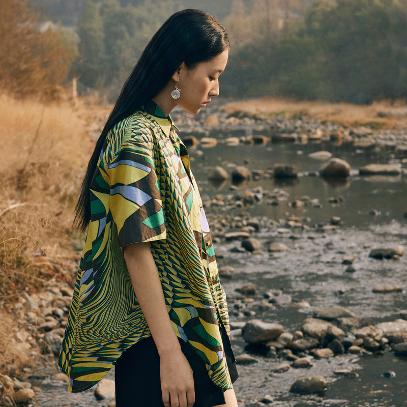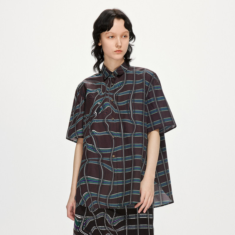 【早春上新】JNBY/江南布衣春夏短袖衬衫女撞色印花宽松衬衣翻领