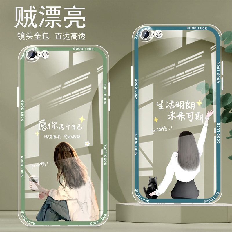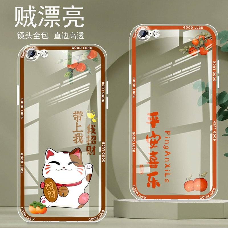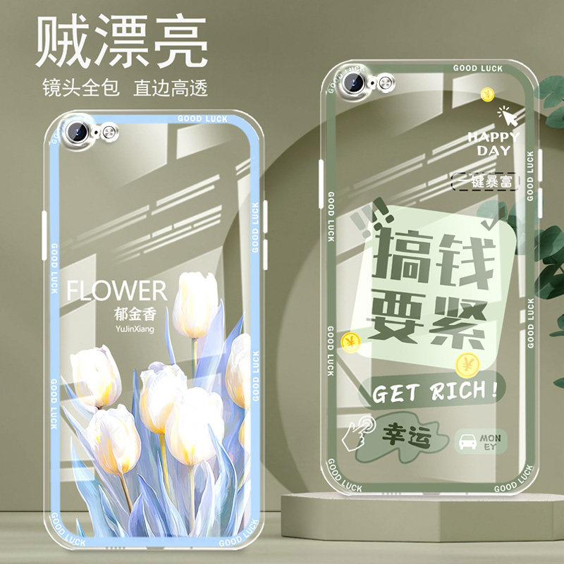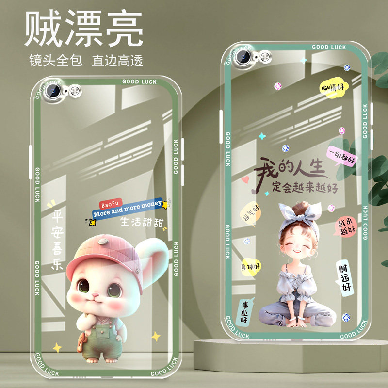 直边晶透苹果7手机壳8新款iPhone7plus全包边8PLUS镜头全包防摔新年保护套女硅胶软壳可爱卡通创意新品高级感