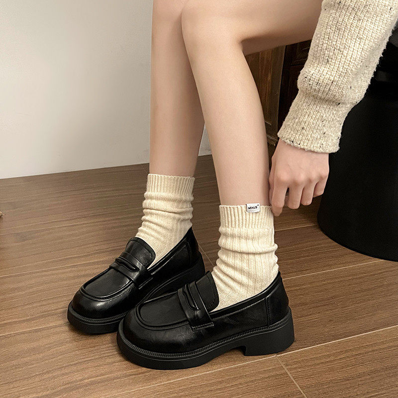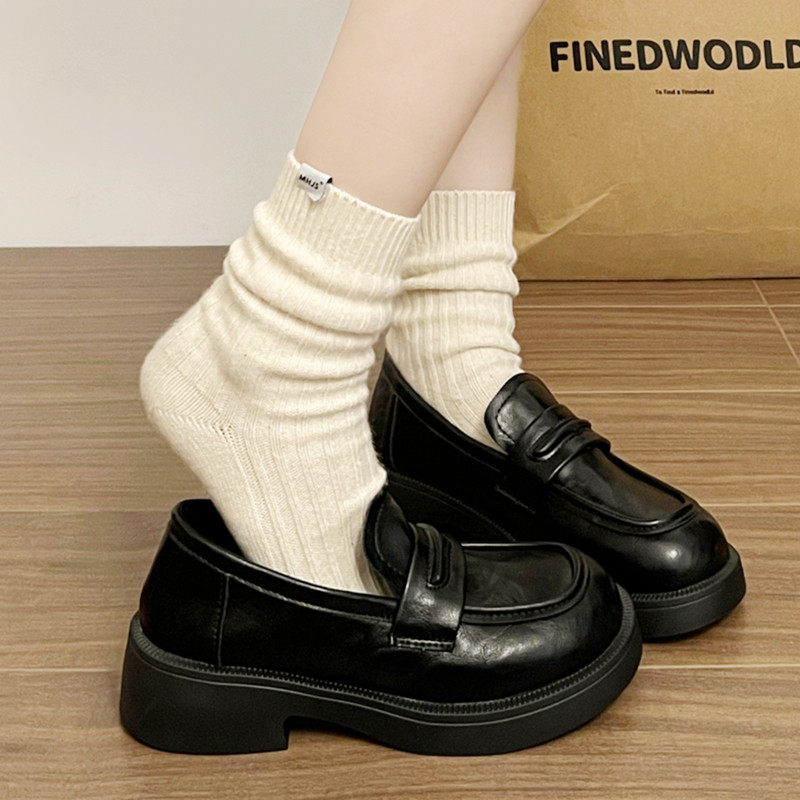 真皮乐福鞋女2025春秋新款平底单鞋玛丽珍黑色厚底英伦风小皮鞋