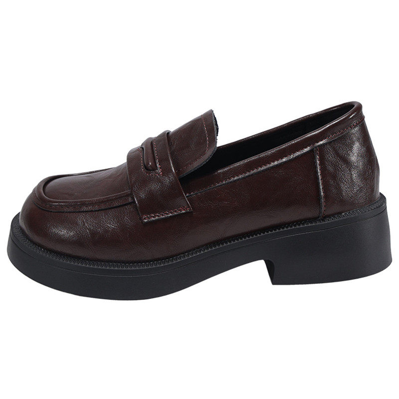 羊皮版~棕色高跟小皮鞋女2025秋冬新款增高单鞋英伦风厚底乐福鞋