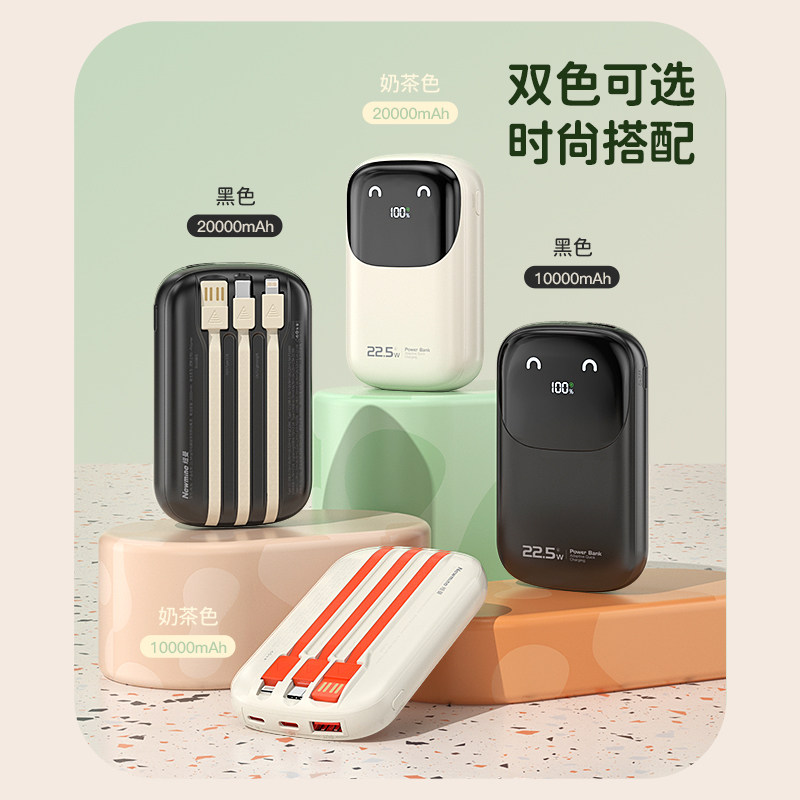 【新国标3C认证】纽曼自带线充电宝定制LOGO20000毫安大容量22.5w快充迷你超薄小巧便携移动电源免费刻字