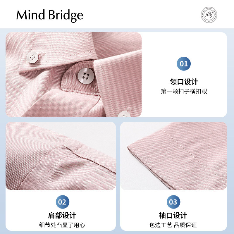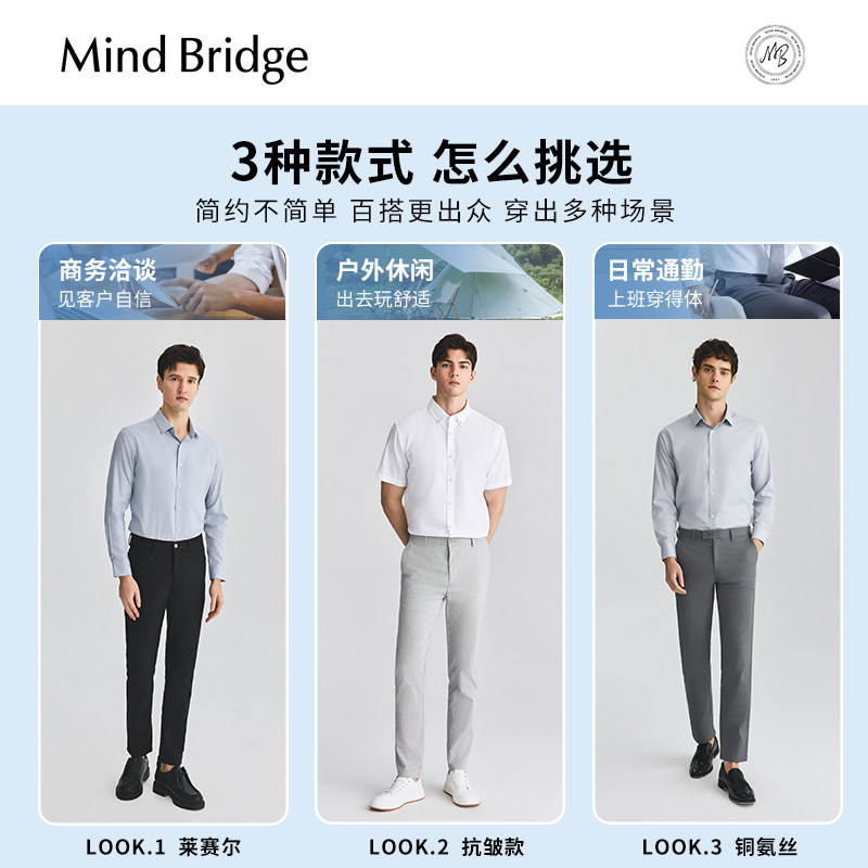 MindBridge夏季男士铜氨丝天丝亚麻抗皱长袖衬衫商务纯色通勤衬衣