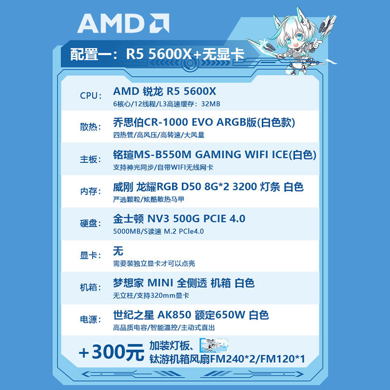 AMD R5 5600X铭瑄B550M蓝戟A750 RTX5060直播游戏台式电脑主机D4
