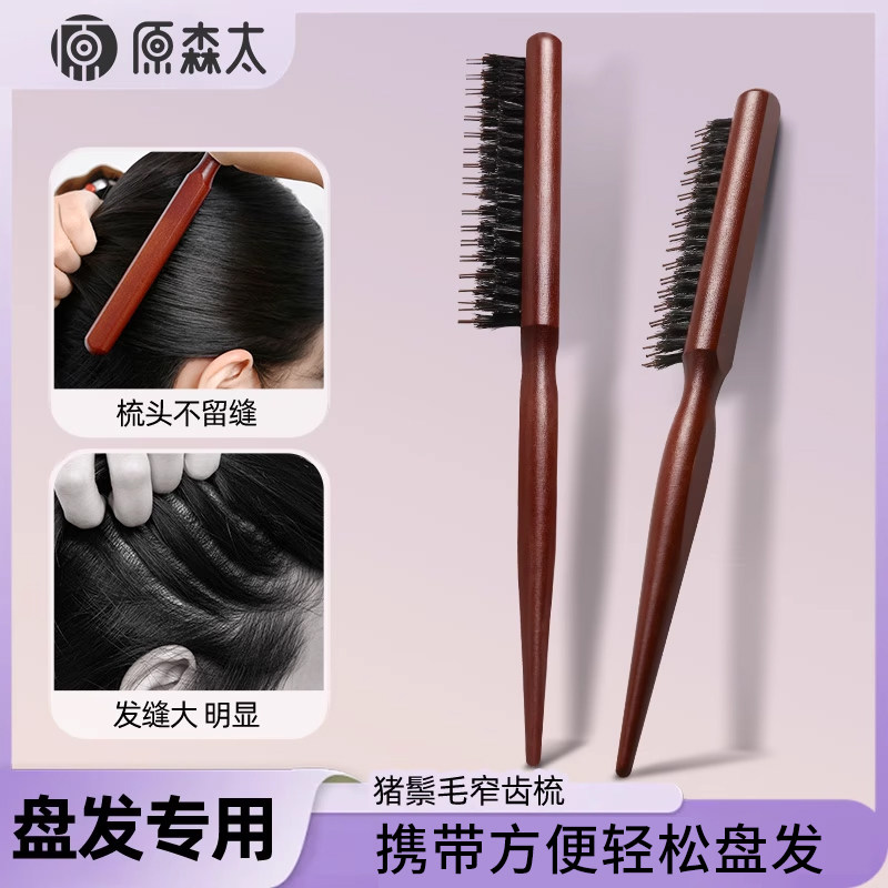 原森太窄齿猪鬃毛梳子尖尾梳蓬松卷发化妆师专用美妆造型梳高颅顶