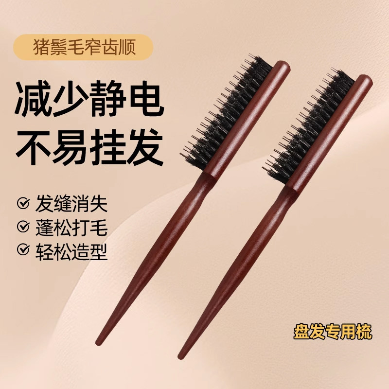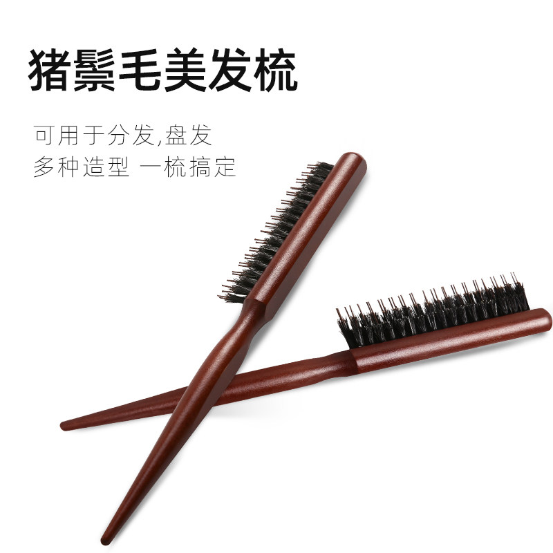 猪鬃毛窄齿梳美发三排打毛梳子蓬松造型长柄化妆尖尾盘发卷发木梳