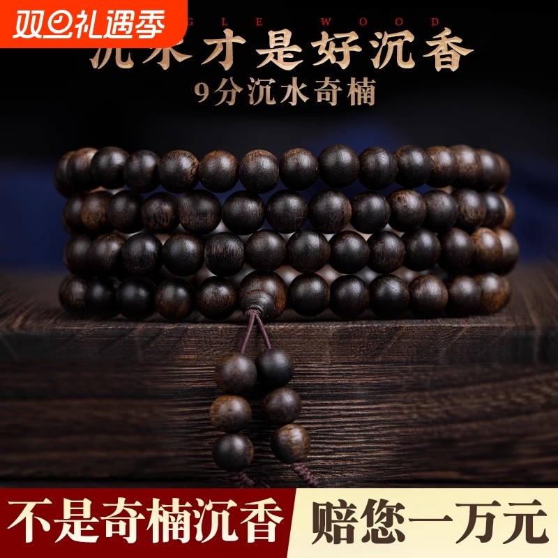 天然芽庄奇楠沉香手串108颗棋楠男女款念珠佛珠沉香木质手链老料
