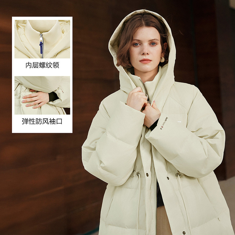 采用75绒羽绒填充,防泼水性能佳