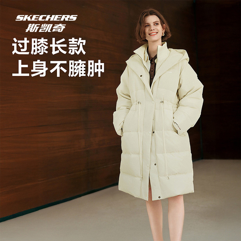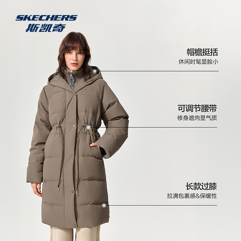 斯凯奇官方outlet店羽绒服女士长款防风保暖户外运动羽绒外套
